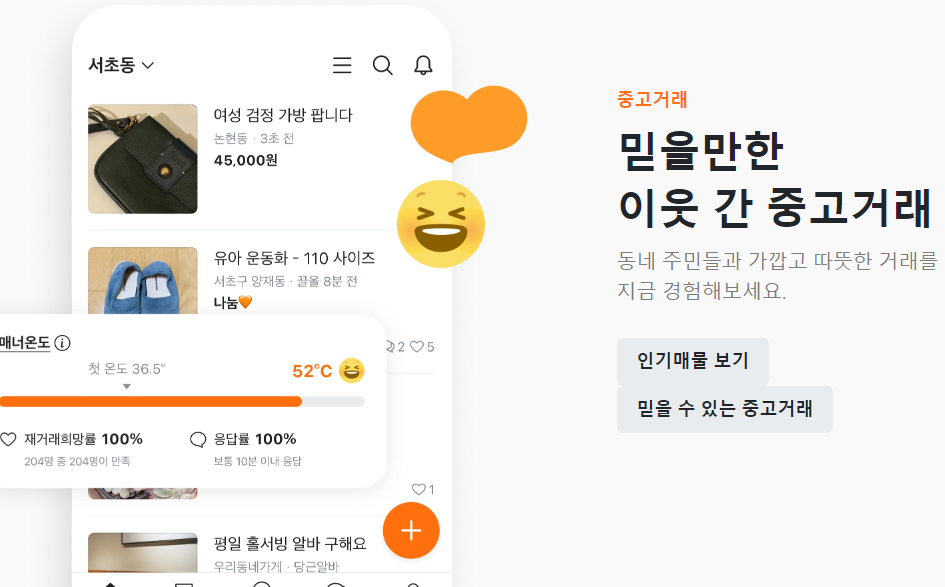 | 1. 가입 및 동네 인증 | 앱 다운로드 후 회원가입을 하고 동네 인증을 완료합니다. |